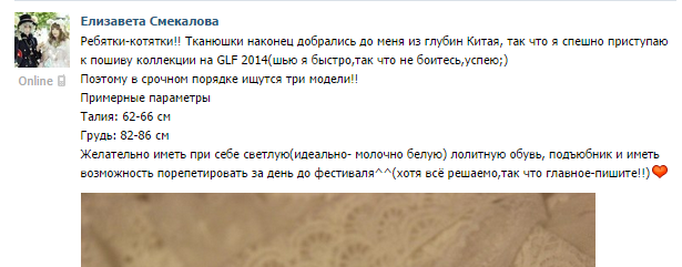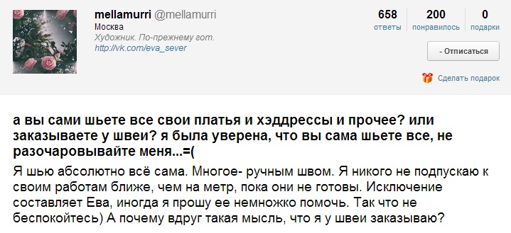 >>15154 В объяве о поиске моделей писала: "вещи шьются проф швеёй". То есть не ей, а некой другой тётей. А сама она только подъёбники и убогие бейби долы строгает.