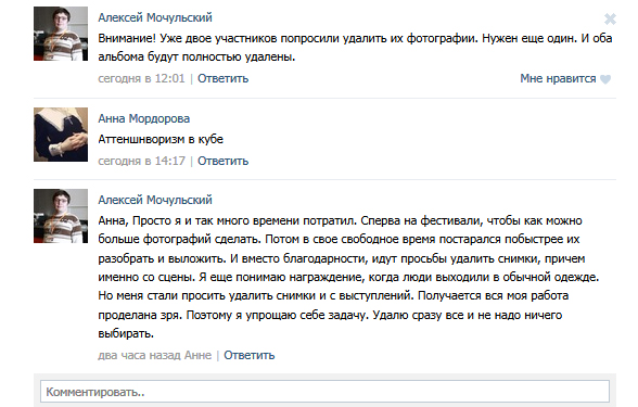 ДЕВКАНЫ! ЛУЧШЕГО ФОТОГРАФА ЗАТРАЛИЛИ! Признавайтесь, кто обидел Алешеньку своей гадкой просьбой удалить кривое фото???? Пойду тоже попрошу, хотя мне моя и нравится ;3