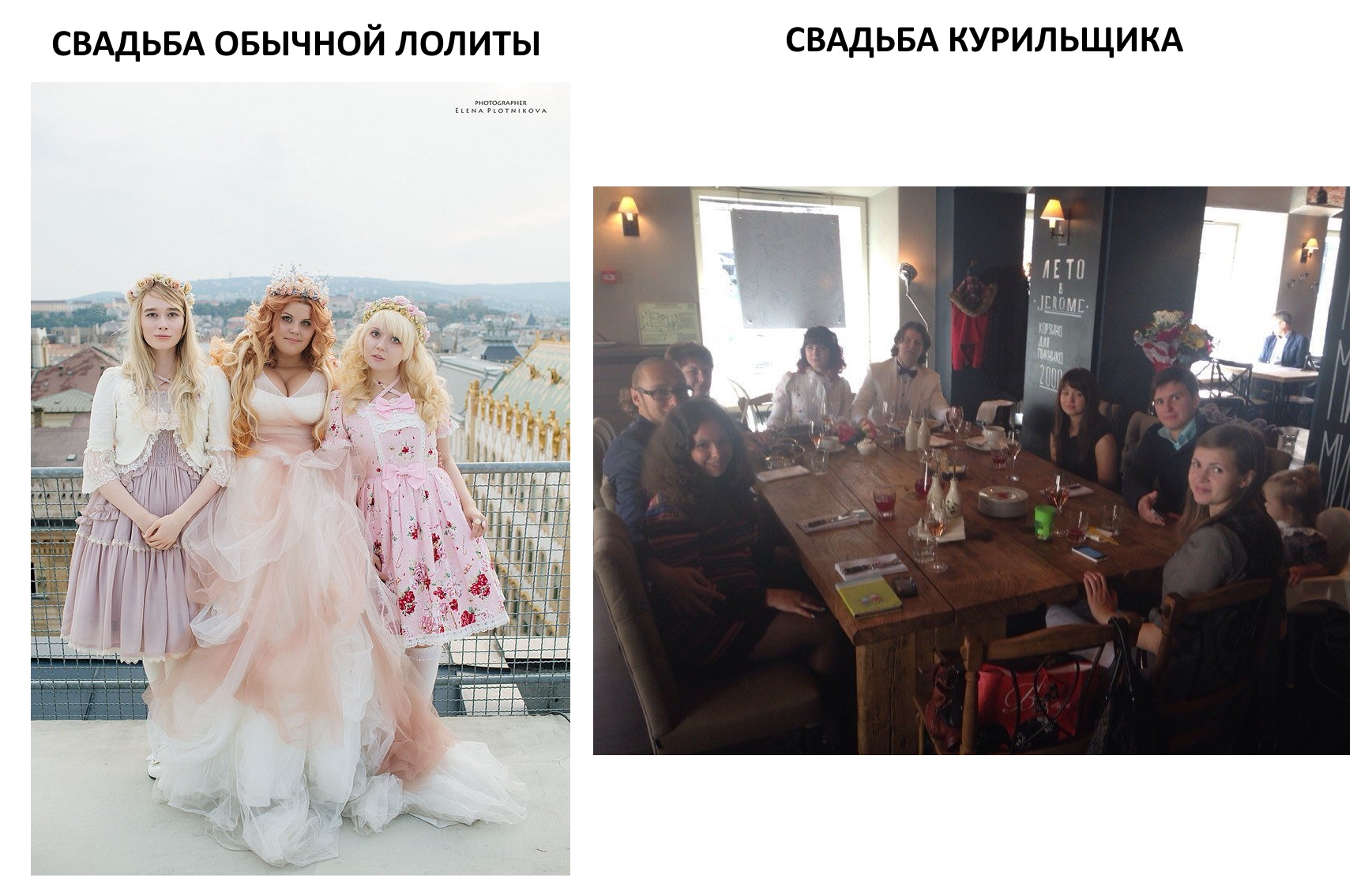 Вообще, призываю в тред всех мечтающих выйти замуж в лолите. Поясните мне, в чём суть фантазии? Я понимаю, пока ты в школе - даже бодик кажется ащщщщащщщ роскошью на белом коне, но по сути... Лолита - это же СТРИТфешн... Т.е. в общем-то повседневная одежда, пусть и неформальная... Я понимаю, ладно там действительно гости придут такие нарядные на "свадьбу неформалов", но главные герои праздника, мне кажется, всё же должны выделяться на порядок над общим уровнем, не? Мне лично было бы самой некомфортно ощущать себя на том же уровне, что и мои подруженьки, на МОЁМ БЛЯТЬ СОБСТВЕННОМ ЛИЧНОМ ПЕРСОНАЛЬНОМ БЕСТ ЭВАР ЛУЧШЕМ ПРАЗДНИКЕ В ЖИЗНИ. Точно так же можно и в обычном вечернем наряде прийти в загс.