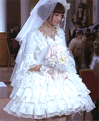Алсо разглядывая этот самый ОП-пик, я наконец поняла, что настоящая свадьба лолиты - это когда твои лолиты-подружки приходят по дресскоду. Венчаться в лолите самой - это верх уебанства, ибо даже самый кружевной монстр от бейби будет выглядеть нищенской тряпкой по сравнению с обычным свадебным тортом. Даже если брать ОЧЕНЬ удачный пример Овуленя, всё равно для свадьбы она выглядит... бедненько, хотя как дейли-образ получилось очень неплохо не в пример её обычным дейли-высерам, кстати. В общем, девки, кто как, а я решила задвинуть свои детские мечты выйти замуж в энджелике подальше. А точнее, вывести их на новый уровень - см. выше.