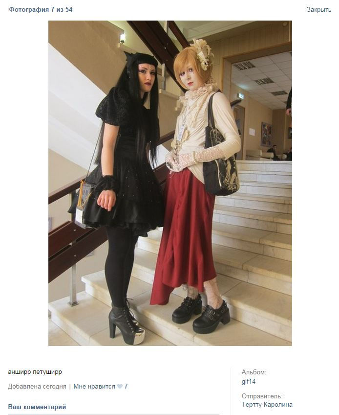 >>15971 Сисы, я одного не понимаю. Если группа называется Gothic&Lolita, то подразумевается, что она посвящена именно этому стилю. НЕ JSF со всеми вариациями любителей черных мешков, оджи, кодонам, гяру, химе, аристократов, фейри и прочих сортов.
