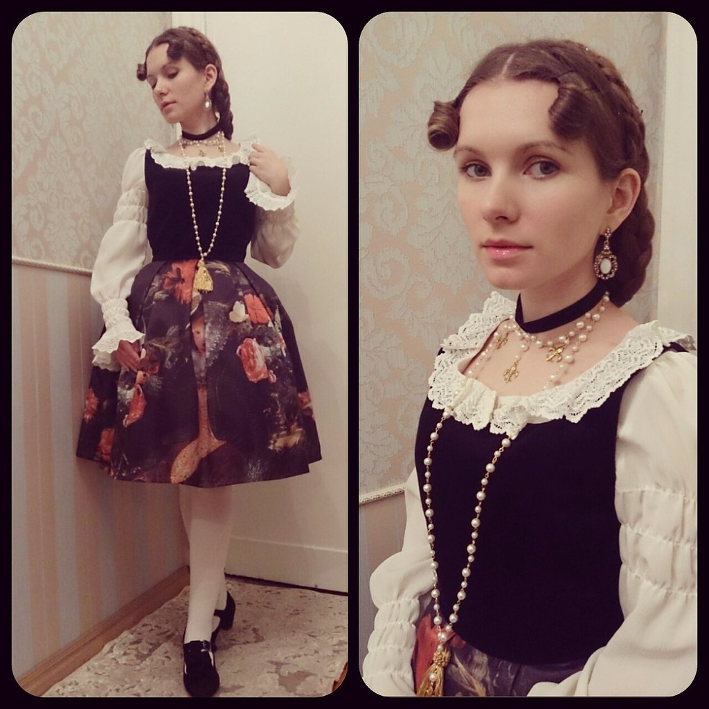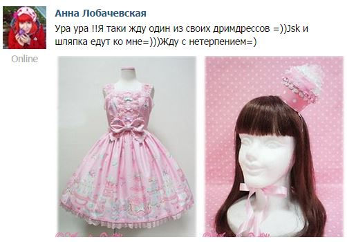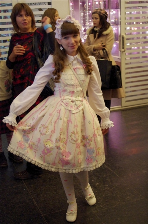 По поводу того, дорог Притти или нет. Вот знаете, часто в конфешенс пишут, что типа лолитная одежда дешевле качественной цивильной. И у меня всегда бомбило от этого, потому что я покупаю от силы одно бурандо-платье в месяц, а значит по логике - я нищееб. Факт фактом, но не приятно ж признавать такие вещи :СССС И тут гуляю я с тянкой в Атриуме а это типа ГУМ для бедных, увидела на витрине симпатичный свитер, бренд вполне себе ноунеймовый, вижу что народ в том магазине тусует,а значит доступно. В общем подбегаю померить-купить, а эта шерстяная сука стоит 15 тыщ! Тут то я и обосралась в своем бейби за десятку! В общем веду к тому, что лолитный шмот действительно не так дорог на фоне качественнойтм модной цивильной одежды с именем и без. И да, прям жжение в районе пятой точки от этого :с