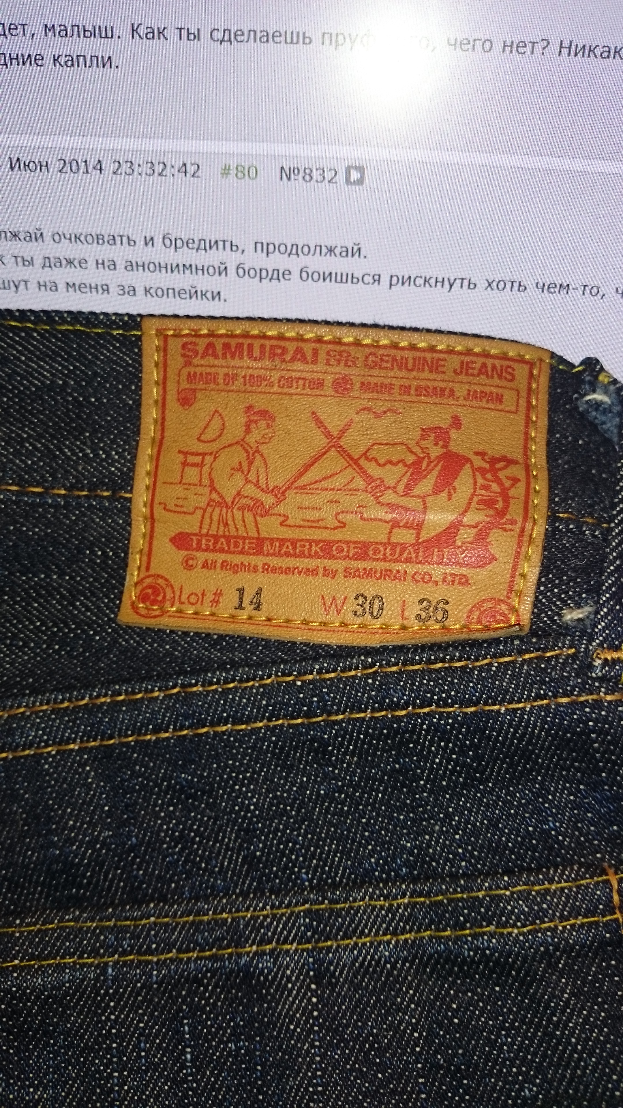 >Я говорил о качестве их денима. Которого лучше, чем у самураев, IH, ну Oni еще или PBJ на худой конец, не существует. Это верхняя планка.