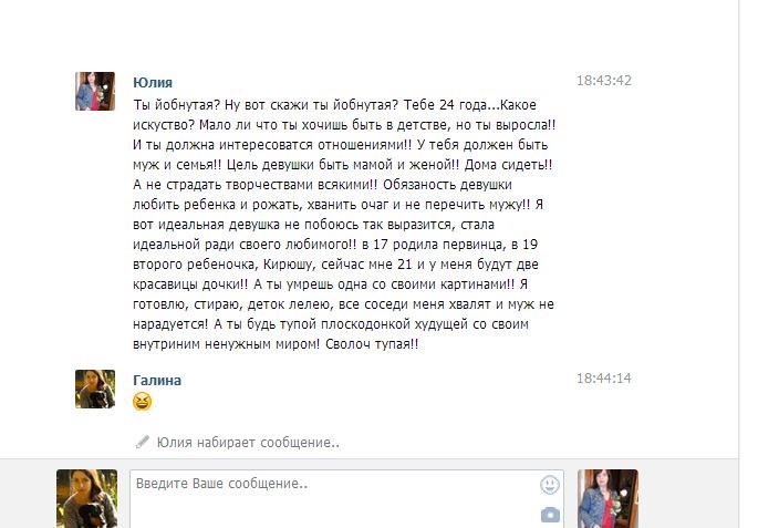 >>21111 Открыла группу из любопытства, кто же там такая багинька, которая никогда не узнает о своём великолепии... А там ОПАРЫШ ЧЁРНОГО МЕШКА ПФФФФФФФФФ! Сис, этот просто топлепс, твоя обрыгинька сама ещё только сейчас, я уверена, вынула ебло из уже покрывшегося плесенью олевья. И вообще, уже давно всем известно, что писать валентинки в пердёжный подвал - дохлый номер. Лучше бы на пьянке 4го января лишнюю бутылку подкатила за столик, нахуй ей твоя валентинка всралась?