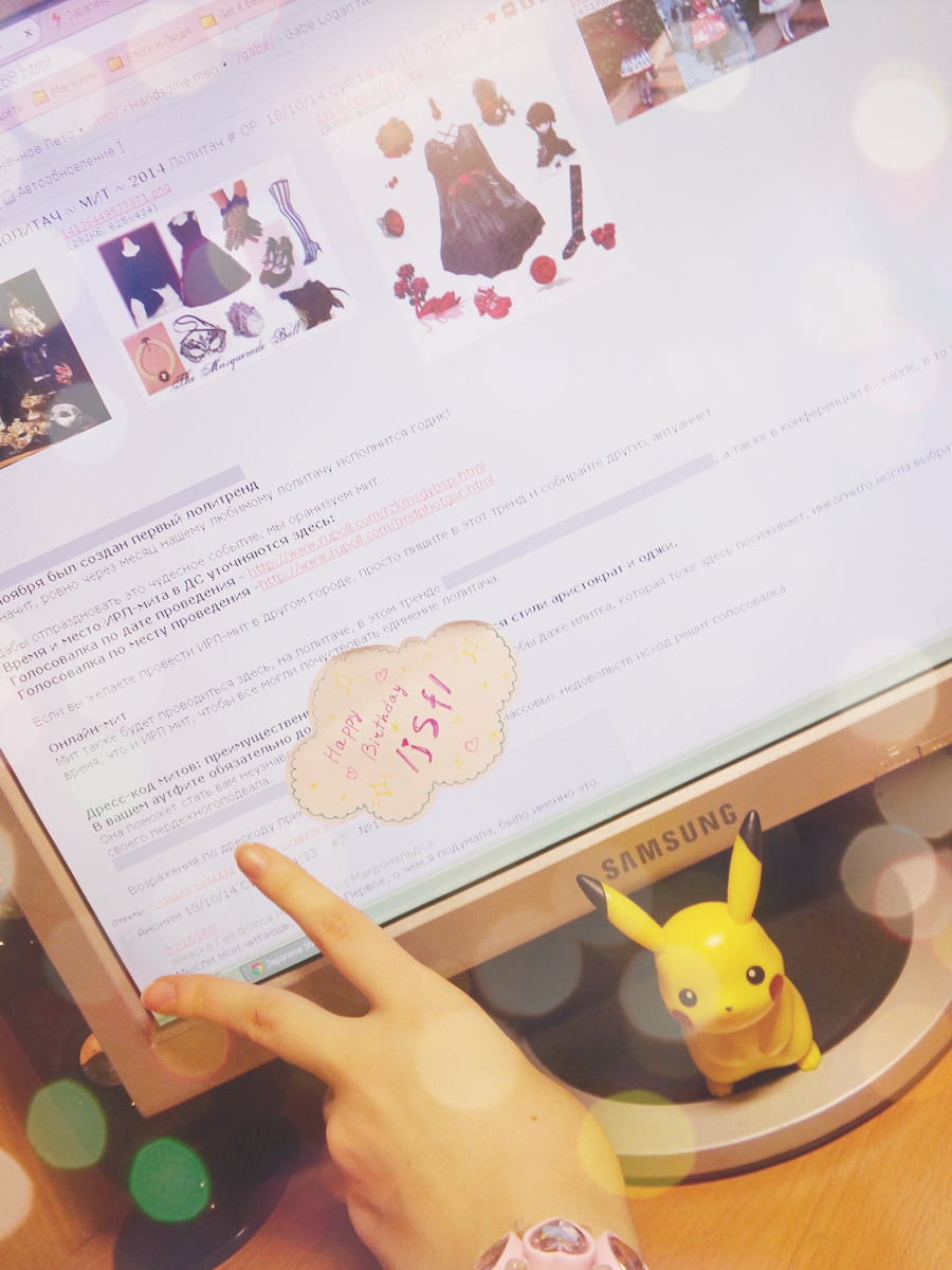 Я, видимо, настолько замороченная своими несуществующими делами аутистка, что даже не поздравила лолитач вовремя. С наступившим Днём рождения, любимый лолитач! И спасибо вам, мои друзья, за это прекрасно проведённое время в уютности, спорах и философских беседах. Надеюсь, что у нашего раздела большое будущее и скоро он заменит главное соо, ихихи.