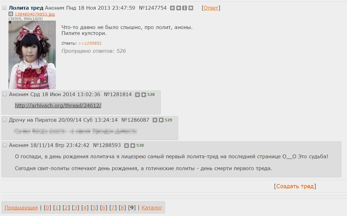 Наверное, я странная, лолитач, и скорее всего буду одна, но мне очень грустно. История лолитача, который стал для меня родным домом, всегда была важной частью меня и непривычно ощущать, что теперь она обращается в прах. Я не готовилась к этому дню и ничего особенного у меня нет для поминок, поэтому я просто мысленно поставлю свечку на краю обрыва бездны, которая поглощает мой родной лолитач, в память о первом треде и разбросаю над ней грустные картинки, как поминальные цветы. До свидания, родной тред. Мы пошли дальше.