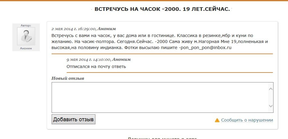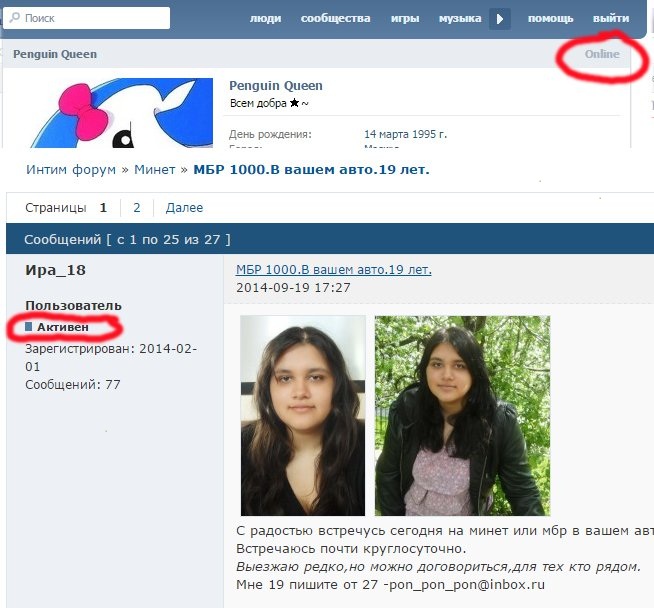 >>28455 Продолжаю доклад :3 Маленькое расследование показало, Пингвин никуда не пропал и продолжает давать объявления на всех своих "рабочих" сайтах. Первым пруфом является визуальное описание нашей королевы подворотни. Тема оказалась перенесена в архив, т.к. в ней оставили нелестный отзыв. Сейчас она постарается все удалить как в прошлый раз, но у почтеннейшей публики есть несколько дней чтобы самим убедиться в правдивости и непредвзятости расследования. http://www.intimdialog.com/topic63707-mbr-1000-18-let-p3.html Мое внимание тут привлек текст: "Бывал у нее. На вид достаточно стремная, лет 19-20, смуглая, полукровка, полноватая, но что Вы хотите за 1 000 рублей?! Глубокий не делает, тупо отсасывает, старается сделать все, чтоб побыстрее кончил. На ночь брать не советую, просит 6 000, но может кинуть. По пьяни заснешь - так она тут же сваливает, не дожидаясь утра." - Как это похоже на нашу Пингву? Да это она и есть! А это актуальная тема, ее она апает примерно раз в неделю, последний раз - 18 апреля. http://www.intimdialog.com/topic66827-mbr-1000-18-let.html