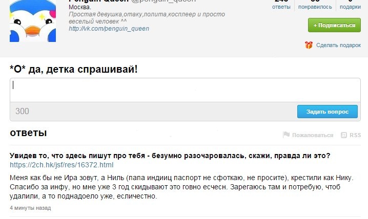 Да это же фейк, выложены те фотки, которыми пингва уже светила ранее. Она же еще не совсем взрослая, нервная система не окрепла, вдруг она от троллинга выпилится, будет плохо