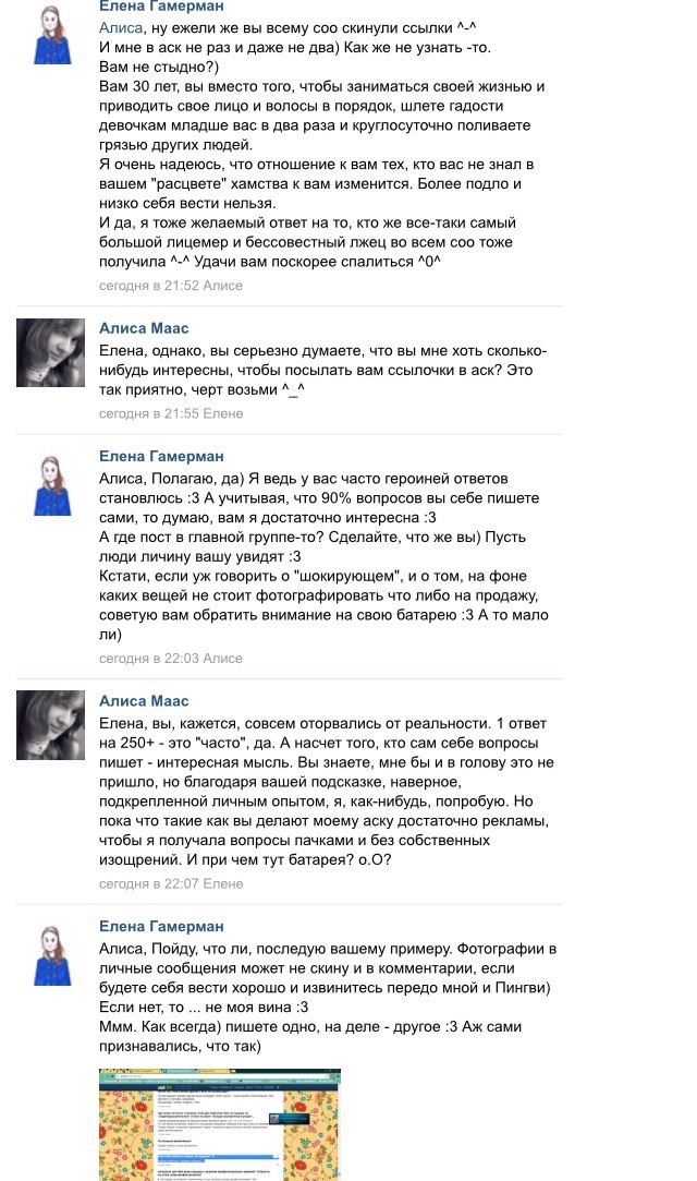 >>17410 Маас вызсказалась по поводу пледика, Гамерман сказала, что сажи ей говно себя ведет, она же старрше и нехуй распространять это по соо, особенно ей в аск, чож ты, Маас, мол, аск мне зафлудила, да еще и сама себе вопросики пишешь. Маас вбросила ей сажи и сказала, что из-за таких как она вокруг нее ажиотаж и ей само писать себе вопросики смысла нет.