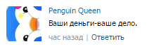 >Вообщн, если ты не заметила, я о занятиях пингви молчала. Ибо это ее дело и меня уж точно не касается. Мне показалось, что это звучит как >Я не знала об этом до того, как узнали на дваче и сейчас, сидя в треде, я стараюсь прямо не упоминать об этом.