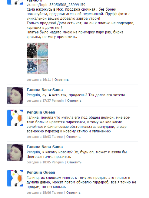 Срочные новости унылого недосталкинга: Пингва срочно распродает половину коллекции своих платьев, кои она даже не носила с предпочтительной пересылкой, нежели личной встречей.
