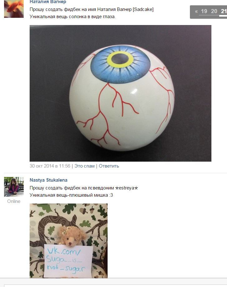 >>17674 >>17711 БЛЯТЬ! ЭТО ЖЕ ЕБАНАЯ ЗАМУЛА! ТОЛЬКО ПОРАДОВАЛАСЬ, ЧТО ОНА НЕ ВЫСОВЫВАЕТСЯ, А ТУТ НАТЕ! Сука, у меня от нее бомбит пиздец. Вброшу стори. Но на всякий под спойлером. Короче, она собиралась купить у меня платье. Стоило 1800 без пересыла. Мало того, что она сразу незнакомого человека начала звать на "ты", а когда я сказала, что мне это неприятно и надо иметь хоть какое-то приличие, пиздец наагрилась и сказала что я мол не имею права ей указывать пок-пок-пок. А потом вообще сказала: (барабанная дробь) "я бы взяла его за 1500 и это уже с емс-пересылкой" (!!!!) СУКАШТО?! БЛЯТЬ ОНА ЕЩЕ И ТУПАЯ КАК ПРОБКА ВЫ ПОСМОТРИТЕ НА ЕЕ ЭТОТ ХОТЯ БЫ ПОСТ >>17711 Заварите мне ромашковый чай, пожалуйста, иначе я сожгу тут ВСЕ огнем из своего пердака. Блять.