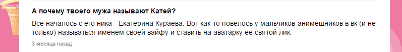 Честно я хз, почему тут хуесосят Катину тян. Мне ее больше жалко. Я вот даже сходу ее имени не помню, зато знаю, что она жена наркомана-извращенца-опенмайнда, в открытую ищущего на двощах подстилку за вознаграждение на пару с Рикой и Каришейp. Абсолютно понятно, что он может вызывать некое недоумение к своей персоне и многие лолитки не скрывают своей брезгливости по отношению к нему. И это отношение перекидывается на эту девушку, судя по всему. Правда, может это лишь мои догадки. Вот вопрос - а с ней лично общался кто-нибудь ирл, кто не вхож в каришино окружение? Мб она была замечена в чем-то плохом или плохими манерами, например. А так ита как ита.