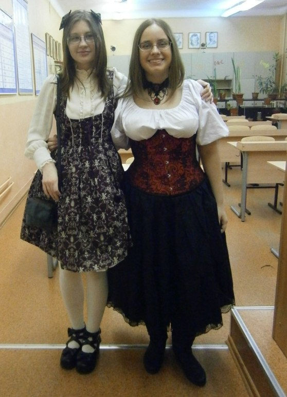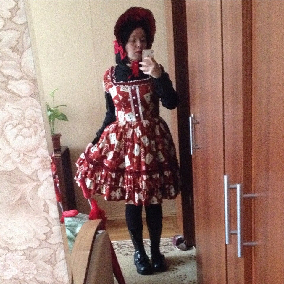 >>20727 Здесь прям "как быть итой в бурендо". Хорошо сочетаются тут только платье, блуза и капор. Блядские перчатки из ларька всё-по-50р, колготки с бабочками, БОТИНКИ под роскошнейшее элегантное готическое платье - вотзефак