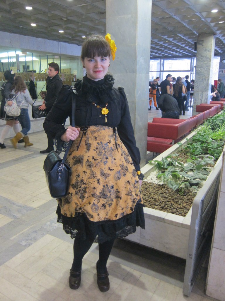 >>20727 Нужно отдать должное -- лично я еще не разу ни в одном наряде не видала, что бы колготки с принтом хоть как-то сочетались с остальным шмотом, всегда думала, что их для лулзов надевают исключительно. А тут еще по-божески, под цвет блузы так-сяк. Плюс бабочки создают визуальный шум снизу, цветочки в капоре создают визуальный шум сверху, мне норм.