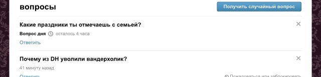 Ну и что же это за дела, антуанетты? Только вот я, значит, прониклась этим вашим дискачем из прошлого треда про 50 вопросов и ни 1 встречного и решила для себя, что "всё, больше не буду пафосной сучкой, буду интересным собеседником, всё по схеме вопрос-ответ-комментарий-вопрос" - и что же? Несколько дней назад одновременно ко мне добавилось 2 новых человека с диаметрально противоположными диагнозами. Первая спамит меня вопросами и хочет, чтобы я работала в режиме радио. Когда я в конце своего ответа про "как у меня дела" ставлю ответный вопрос - она отвечает односложно в духе "норм" (да/нет по ситуации), хотя я стараюсь задавать открытые вопросы. Вторая наоборот, хочет, чтобы я была для неё личной сливной канавой для её удивительных историй. С ней у меня как раз получается "задай 50 вопросов и не получи ни одного встречного".