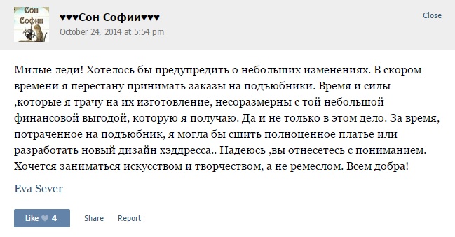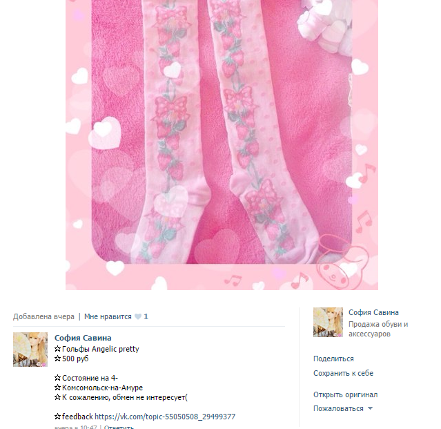 >>21225 Согласна, наглость. Тебе заплатили - ты выполнила заказ. За этим отношения покупателя и продавца прекращены. Если тебе так нужно фото в портфолио, попроси человека корректно в лс, а не накладывай на него какие-то обязанности дополнительные. Сама таким только по косплею сталкивалась, лолитные вещи на пошив не заказываю, но напрягает это реально, что я еще должна в голове держать, что вот какому-то там мастеру, которого и в друзьях-то нет, я еще фоточки какие-то должна. Нужны - бери сам с пабликов, коли они у меня в общем доступе.