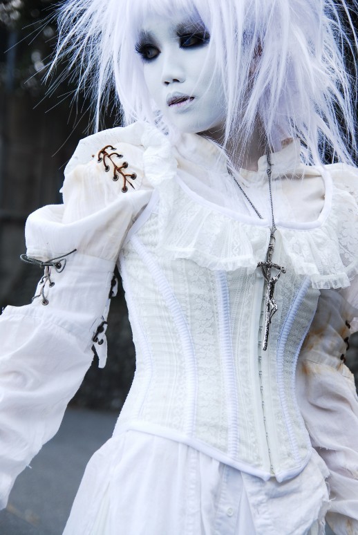 白塗り (white paint), a sub-movement of mostly indies bands from Japan. Shironuri is closely related to the Visual Kei movement but has quite a different feel with its, often humorous, approach to the Visual Kei scene. These bands paint their faces white, often in an attempt to appear dead or ghostly or in a way reminiscent of traditional Japanese theater.