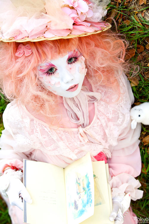 Откуда у японцев возникла идея белить лица? Ясное дело, японцы всегда фанатели от белой кожи, которая считалась ярлыком элиты. Но почему только лицо? Лично мне видится в данном элементе перекликание как минимум с двумя предшественниками в японской же и западной культурах. В японской можно вспомнить про театр "Но" с его масками, в западной же - французских мимов http://www.mknews.de/upload/article_images/0f/a6/6d/495_27644.jpg . Причём именно у последних грим на лице имеет гротескный характер, который могла развить наша любимая Минори.