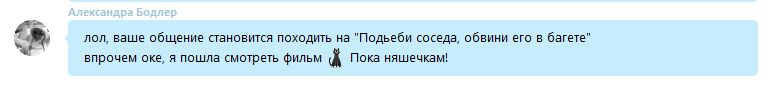 >>24319 Плюсую. Кариша не плоха как человек, но она, как ни крути, неймфаг. Как на борде, так и там. В смысле, я понимаю, что в скайпе это нормально, но в общении одеяло все равно она тянет на себя. И как бы так получилось, что уровень общения разный - те, кто друг дружку не знают и каришины омичи, дружащие друг с другом ирл. Из-за этого, ээ, не комфортно и в таких случаях кажется, что в чужой разговор вмешиваешься.