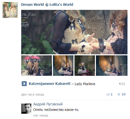 >>27130 >19 марта >12 марта Это со стены под постом об очередном косплеере лолиты. Заскриншотила с пару дней назад и забыла принести. Для всех интересующихся: эти негодования были самой интересной частью, можно не искать.