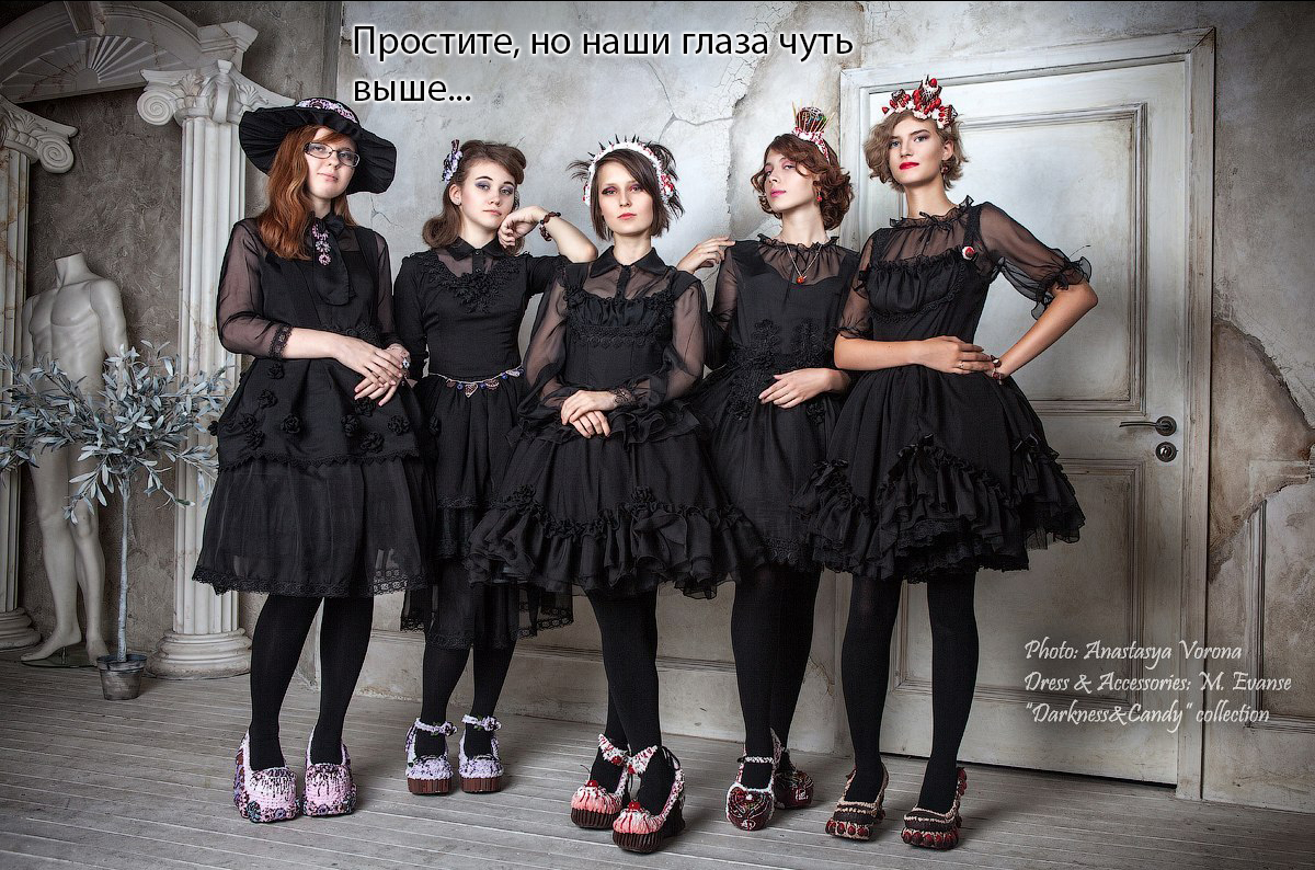 Кто-то выложил фотосет без блузки и подъюбника и назвал это лолитой - мы заворачиваемся в рюши и пьем чай. Дейли из шкафа, вертолетные хэддрессы, парики Хатсуне Мику - мы обсуждаем это за чашечкой изысканного дарджилинга. Иты, черномешочники, война, голод, падение рубля - мы надеваем платья с тортиками и собираем мит. Мистер Ян изнасиловал несовершеннолетнюю модель - а мы скупаем бодилайн. Мы с радостью выкупим ношенный десятью жирухами дримдресс, наши каноны основаны на здравом смысле, придирки к чужим аутфитам — наша стихия, мы — истинное лицо уличной моды.