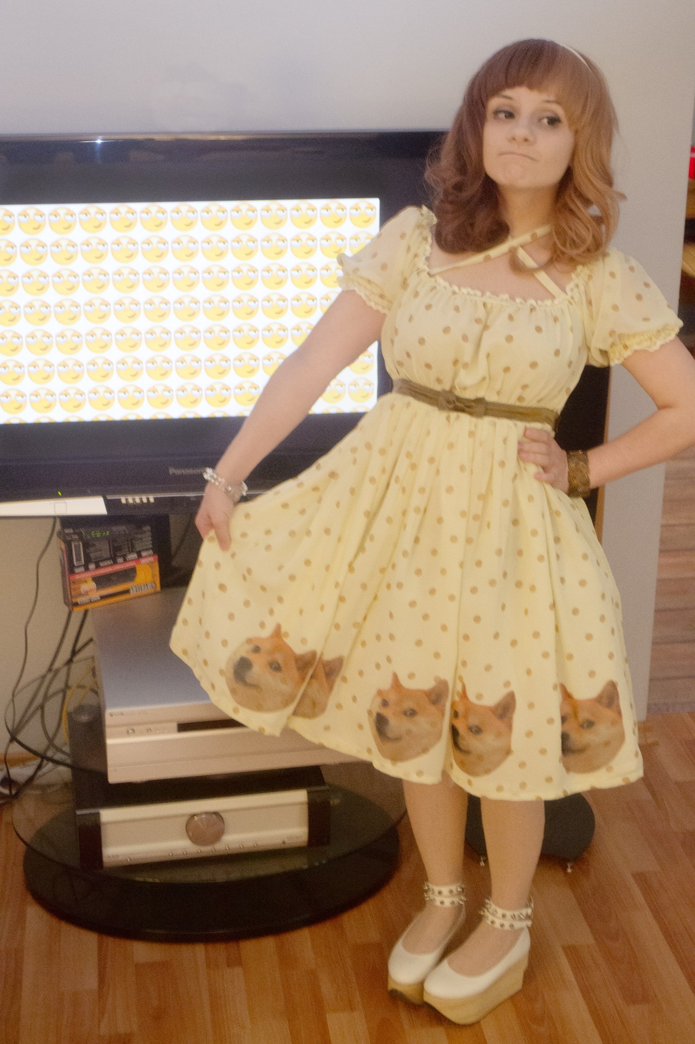 >>26509 Самый уёбищный. Как вообще можно было испоганить неплохую вроде бы полосатую ткань? Или тут просто сфоткано так и ирл она настолько же убога как и стрёмного цвета парик, пришитая на подол половая тряпка, ярко-красный кейс и великолепное сочетание всего этого шика?
