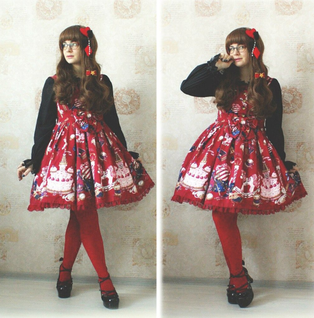 а вот мне кажется, что она очень хорошо составляет образы. та же отвратная полосатая красная юбка бодилайна смотрится вполне годно. что же касается "первых шлаков"... о божечки, вы серьезно? сравнивать действительно годные коорды этой девушки с первыми шагами лолит, у которых зачастую денег на подъюбник не хватает? бля, вам никак не угодить. сначала говорите о том, что самое главное в лолите - это умение чувствовать стиль и одеваться со вкусом, а теперь нет, тян "никакая", не обвешана анджелик-хуянджелик и т.д.