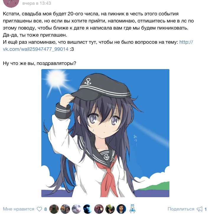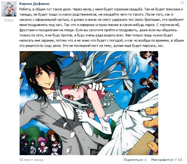 Вопрос не по теме. Кто-нибудь из лолит собирается идти к ней на свадьбу? Я бы хотела, просто. С одной стороны мы не знакомы, но с другой стороны не каждый же день лолитную свадьбу удаётся увидеть. Но я как-то стесняюсь ей написать, и с нихуя прийти.