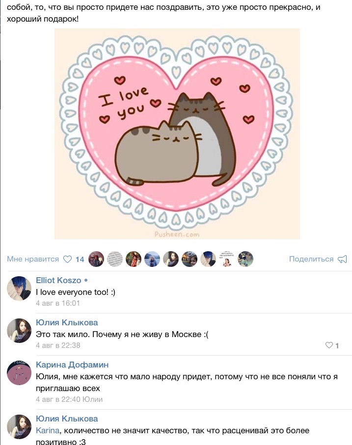 Я тут проходила мимо всей этой вашей санта-барбары, но скажу — дружить с Кариной это что-то вроде чистилища и точно не для каждого мне понятно, почему у неё такая ситуация. Одно время я на самом деле очень хотела с ней сблизиться и сделала все, что на тот момент смогла, но не вышло ввиду множества обстоятельств, которые были связаны и с Карининым характером в том числе. В итоге я пожала плечами и решила, что может как-нибудь потом. если она сейчас читает это, думаю, она догадывается, кто это пишет