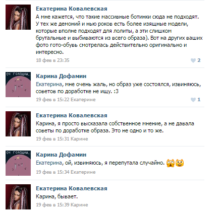 > Будешь как одна из наших лолит-экспериментаторов, которые "специально нарушают каноны" в стиле. Такое стремление влезть в чужие тебе рамки, "потому что это модно", чтобы потом вырываться из них, "потому что я вся такая творческая бунтарка и не такая как все" - это просто такое... хм, что просто... хех, ммммммм, мда. Мимотемы, конешн, но в идее как таковой не вижу ничего плохого. Конечно, в итоге вечно выходит meh, потому что нарушая все каноны подряд, как мне кажется, никто не смотрит, что осталось в итоге и какое впечатление образ производит.