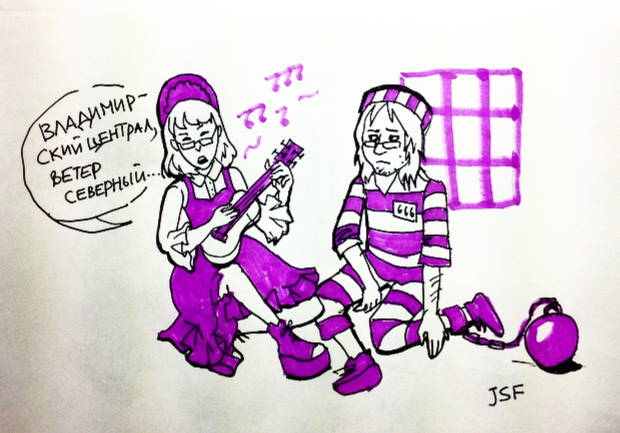 >>33369 Вот вижу такой себе коллажик в духе Батеньки.ру: Рика в тюремной робе с мрачным видом наябывает баланду и рядом - Кариша в своем Sweetie Violet, играющая на укулеле, и чот вот прет