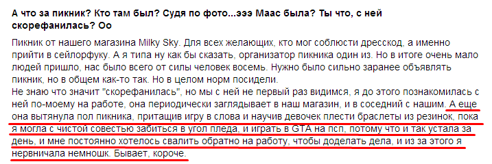 >Гадости, которые я пишу даже анонимно - так же сильно бьют и по мне. Няша, но зачем же писать гадости? С первого своего дня на лолитаче я воспринимала его не сколько как место для слива негатива, сколько место, где можно без купюр помыть кости сообщникам и обсудить вещи, которые не принято писать из под аватарки. Кто у кого и за что спизиздил колечко с зайчиком из гримерки на глф? Откуда у такой-то тян лаве на Котовью Чайнопати в обоих цветах? Кто это такой дерзкий привел спиногрыза/младшую сестру/свата/брата на мит и никого не побоялся? - такое же не будешь писать в соо, а тут можно снять корсет и чувствовать себя как дома, причем, опять же таки, в нейтральном контексте без претензий на хуесосинг