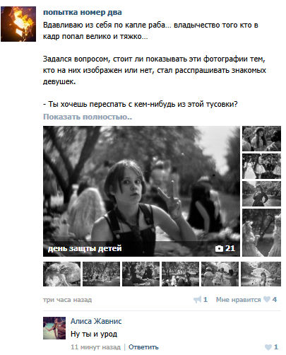 глупо мериться чья пизда шире и кто больше пострадал за родное соо Оболенская и Лиза внесли некий вклад в свое время, это факт и все тут только зачем нужен этот факт и что вообще тут обсуждать я так и не поняла...вам они не нравятся? не общайтесь, сами они дружить не лезут , себя любить не просят и жить не мешают, пришли на мит, посидели, ушли - не похуй ли когда зачем и почему?