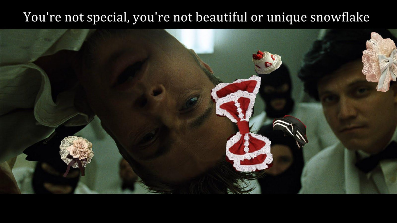 >>33699 Наконец-то я поняла соль всего тренда на гротеск. Потому что я привыкла воспринимать фотки\рисунки довольно поверхностно, не задумываясь о том, что символизируют синие занавески, и т.е. если кишки по стенам не услаждают взор без каких-то коннотаций, то это мерзость и фу. На мой вкус, крипота должна быть либо максимально приглушенной и не вырываться из общей эстетики так, что остальные элементы ее заглушают и на таком фоне она начинает смотреться милой, либо когда она откровенно мерзкая, но ее совсем немного и как-раз весь смысл в том, что она вызывает некоторое отторжение и отвращение, добавляя перчика к глянцевому образу, вот что-то не то, что-то контрастное и чужеродное. Вот для примера, первые два пика мне нравятся до потери пульса я даже одно время пыталась экспериментировать с розовыми и лососевыми тенями по мотивам первого :3, но последний - уже перебор и трешачина, сколько ни мелькал в ленте, сколько я дивилась, что это кто-то еще репостит.