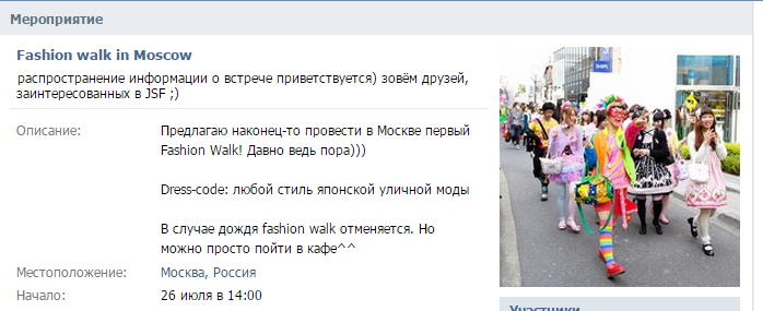 Так кто-нибудь в итоге пойдет на фэшан-волк, м? Что там делать, какие подводные камни? Народ просто собирается в метро, а потом ходит по улицам большой толпой без особого плана действий? Прямо настальджи по аниме сходочкам :3