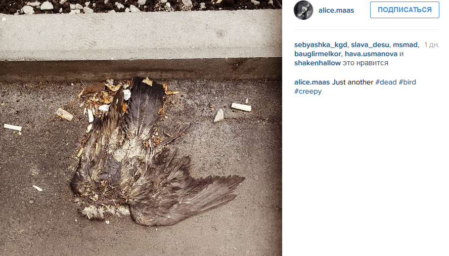 >>33650 >>33666 >>33672 >>33673 На жж было целое сообщество фотографий мертвых птиц, я заходила пару раз повдохновляться. Эстетика смерти, ну а почему бы и нет. Хотя я и не уверена, что стоит такое постить вне специализированных мест.