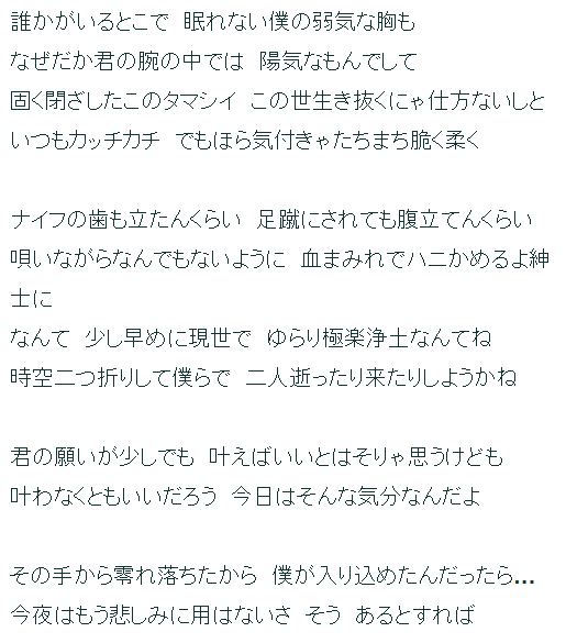 >>33914 Спасибо огромное, сис, отправляю её и ничего не боюсь. :'3 Всем добра! В том-то и дело, что это радвимпс. У них полно ламповых песен, но есть и такое: "Я все равно буду прыгать через твои кишки, как через скакалку". Конечно же я заволновалась, лол.