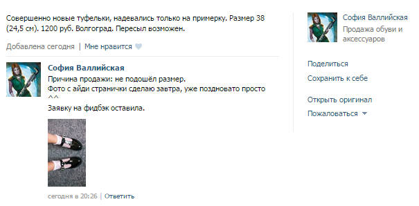 >>32346 Кроме шуток, а вот в соо продаж охуительно было бы такую практику ввести. Плюс временной лимит на продажу, после которого псто бы выпиливался бы и, если вещи не продалась, нужно было бы новый открывать - так бы и реплики с дурацким самопошивом не наводняли бы группу, и неактуальные продажи не мозолили бы глаз хотя для такого размаха нужны рабынечки почище Пучешаевских, ебучий кусок работы же