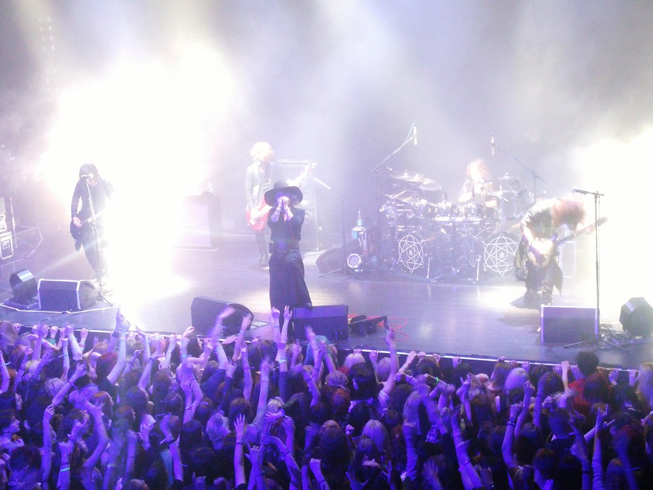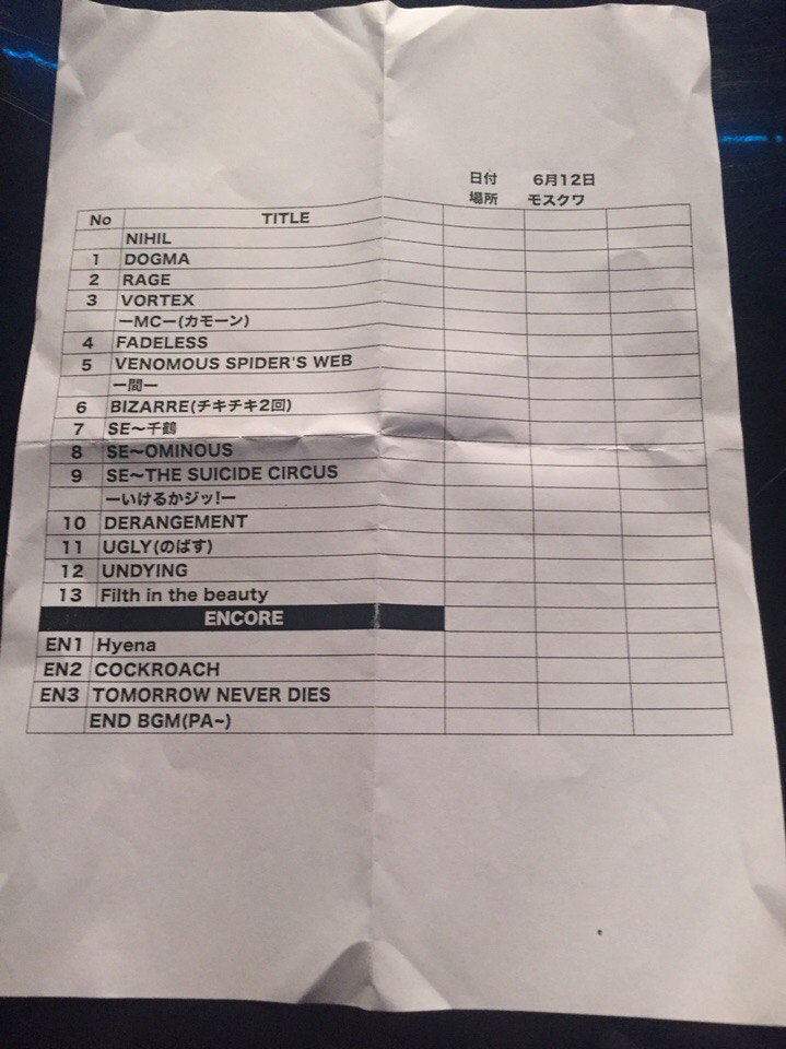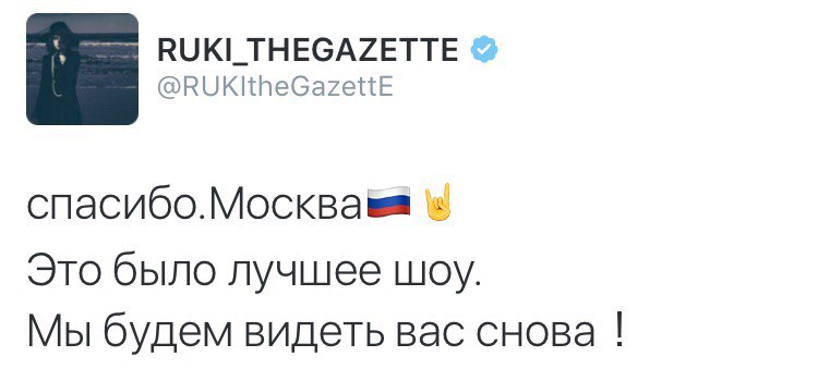 >>43421 Пол-дня простояла в очереди. Было холодно и периодически шёл дождь. Запускали с опозданием. Випыненавижу випов, потому что бичара хотели подарить Урухе бутылку водки, но охранник на входе отнял лол. Ещё випы скупили весь мерч, к началу концерта ничего не осталось. В зале я была в самом начале сразу за фан-зоной. Мне всю сцену было видно. Я кажется несколько раз пересеклась взглядами с Руки и Аоем, он с моей стороны стоял. Аой заигрывал с публикой, подмигивал, показывал язык, танцевал и облизывал гриф гитары лол. Руки тоже облизывал микрофон, танцевал, общался с залом, говорил по-русски часто, направлял микрофон к фанам и все подпевали. Вообще было очень шумно и душно. Слема не было, но у меня всё тело дико болит, а голос хрипит. Началось всё с догмы, было кадило, очень красиво, на Chizuru Руки сгинался и хватался за сердце. Больше всего запомнились ugly, undying и filth in the beauty, вот это была настоящая жара. Газе на протяжении всего лайва улыбались и показывали всячески, что очень довольны. Даже фансервис завезли. Помимо того, что Руки трогал себя, он гладил и обнимал Уруху, потом подходил к Аою. Перед анкором к первым рядам передали русский флаг и плакат к др Урухи. Флаг взял Руки, как и полагается. Уруха, увидев плакат, сказал: "Спащиба". После поклона, раскидывали медиаторы, паточки и бутылки с водой. Конечно в мою сторону ничего не прилетело. Кай пытался закинуть палочки на балкон, получилось с 4 раза. Кому то одна палка треснула по лбу. Когда ребята прощались, Руки, спиной идя к Каю, споткнулся об его ноги. После их ухода со сцены стафф еще пораскидывал медиаторы и все прочее. В общем я очень довольна. Потом они ещё в тви писали, что лайв удался, неожидали такой отдачи и обещали обязательно вернуться.