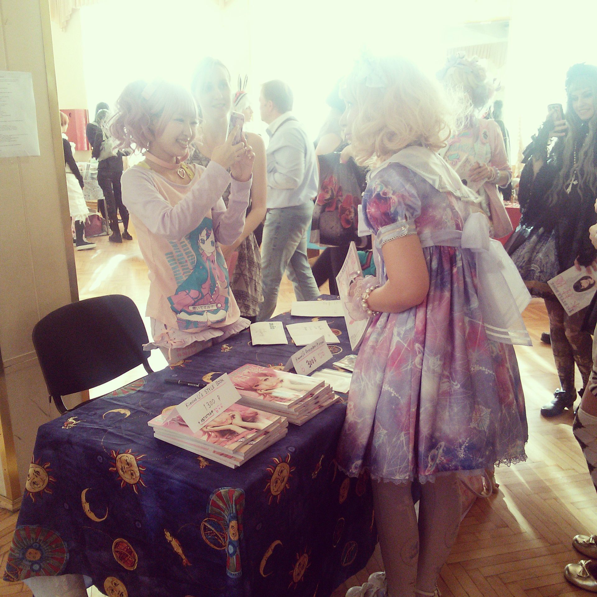 Но вот прямо сейчас, например, у нас перерыв и в фойе сидит посол каваии и традиционно подписывает альбомчики за 1300.