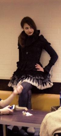 >разноцветные тряпочки складывать умеет Черно-голубое платье, бордово-черный гольф раз, черно-белый гольф два, монашеский воротник с розовой лентой, не опомещающиеся из-за пушистых манжет пушистые же митенки - ну не знаю. Хотя, надо отдать должное, на прошлый илитно-хеллоуин-мит все примерно по такому же принципу одевались, может так и нужно якобы