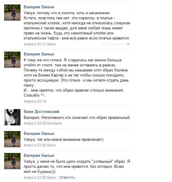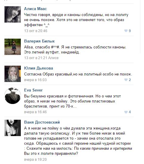 >>34002 >обязательно надо говорить, что всё плохо, что ита и тебе лучше покинуть стиль ШТА Алёна Сис, ты упорота в щи, никто такого не писал. В соо ей дали сдержанную, дельную критику - её реакцию ты сама можешь наблюдать. Что до двача - нефиг вообще сюда лезть, будучи такой нежной, хотя и здесь я не замечаю явного хуесосинга в её адрес за глаза, в основном по делу. Я не имею ничего против этой тян, я тоже считаю, что у неё большой потенциал: она стремится экспериментировать, у неё есть идеи - это всё похвально. Но на данном этапе глупо отрицать очевидную вещь: со вкусом у неё явные проблемы, и пока она не очень горит желанием над этим работать. Она этого не видит, ей норм. Подумай сама: человек подбирает ПАНТАЛОНЫ не под коорд, а под ПАРИК. Не под цветной, под обычный чёрный парик, сис! Я считаю, что в данном случае твоё паладинство выглядит неуместным и отдаёт семёнством. Может, нам надо было ещё и Плечи в своё время защищать? А что, вон, в Париже на официальные типати в жск без блузок ходят, это тоже такая фишечка! Нет, на самом деле не фишечка. Нет, эти шаровары явно выбиваются из коорда. Да, такая длина панталон допустима в лолите, но нет, не под такое короткое платье и не вместо удлиняющей юбки. С длинным платьем выглядывают на пару-тройку сантиметров - молодца, почти что ламповый олдскул. Вылезают на все 20 - будь добра, возвращайся со своим "кукольным" образом к косплеерам лалеты в /fd/.