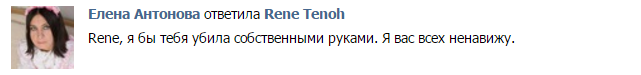 >>35666 О, так это ж моя любимица, только недавно вспоминала! Как я скучала! Из всех неадекватов нашего соо никто не запомнился мне так, как она. Героев нужно знать в лицо. По доброй традиции несу платиновый ну, для меня во всяком случае срач с участием сабжа, после которого у него эпически BOMBANOOLO он грандиозно самовыпилился из соц. сети, попутно возжелав смерти Рене и признавшись всем в ненависти. https://vk.com/wall-54892820_10366