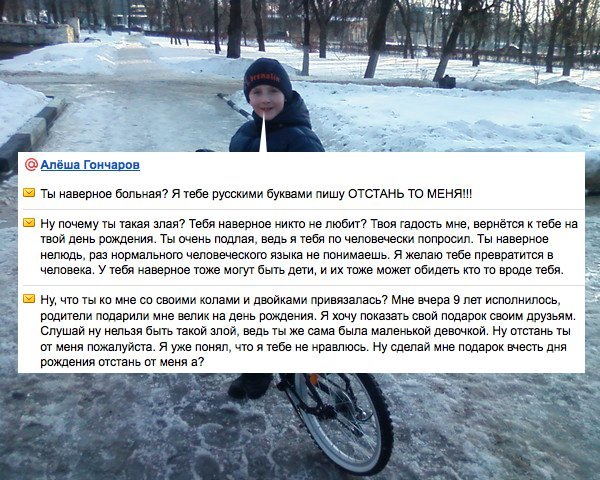 >>49875 >куны в /жсф часто приходили, чтобы найти лолитку на поебаться. Ни одного, кроме Артёмки, который быстро укатился в фд, не помню. Давай ты не будешь выдавать свои больные фантазии, о том что все хотят тебя трахнуть, за действительность. Тем более что именно ты (ну или другая семёновна) первая заводишь разговор о сексе и пытаешься им тролить. А когда тебе отвечают в том же стиле, сразу врубаешь заднюю и начинаешь отигрывать детскую невинность. Психопатка блять.