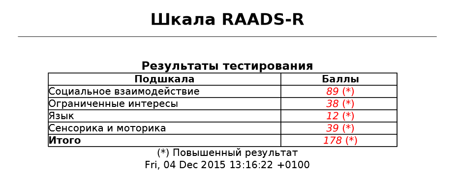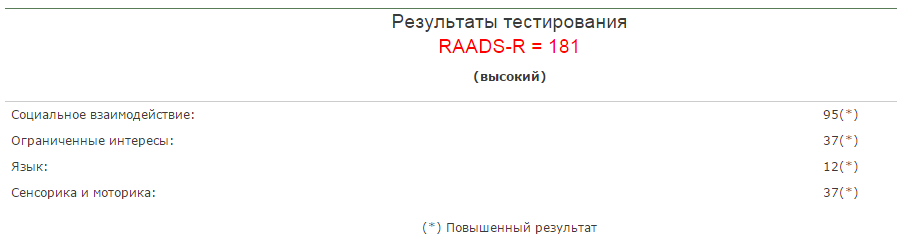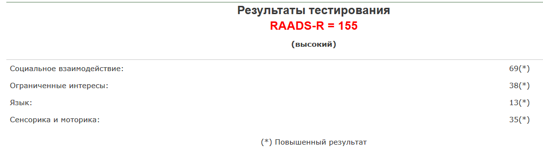Тест RAADS-R RAADS-R - шкала для выявления расстройств аутистического спектра у взрослых с интеллектом не ниже нормы. RAADS-R не даёт ложного положительного результата при иных расстройствах. http://www.aspergers.ru/raads