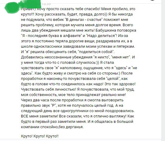 >Ибо кроме болтовни, откуда в людей такие проблемы так это как раз самое важное! надо не просто лечить симптомы, надо найти корень проблемы. например мать даёт двойную установку: стой, иди сюда. Или программирует ребёнка на неверный выбор партнёра и поведение через фразы: «мама тебя любит» и «я убью тебя», в итоге девушка научается поведению при котором она проявляет любовь через холодность и отчуждение, а мужчина испытывает страх перед женщинами. и эти корневые проблемы тянут за собой все остальные вплоть до депресии.