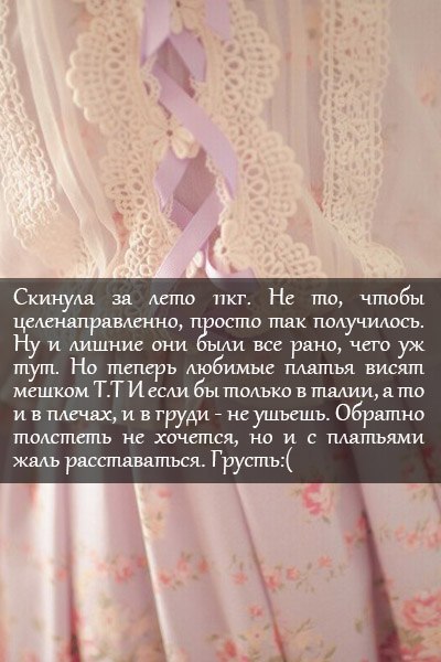 Ни в коем случае не оправдываю ноющих жирух, нет! Но просто объясняю, почему сложно. Для того, чтобы анорексить по хардкору, надо развить очень сильную силу воли, извините за тафталогию, и найти тысяча и одну мотивацию для себя. Я пока в процессе, но реально ощущение, что просто весь мир против меня. Но я продолжаю стараться. Спасибо анорексобогиням в метро, которые опускают меня одним только своим видом и не дают сорваться - их этим летом реально много)
