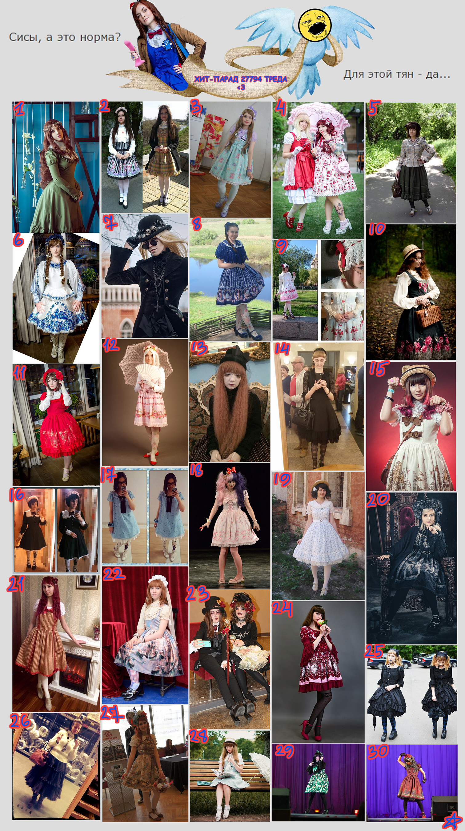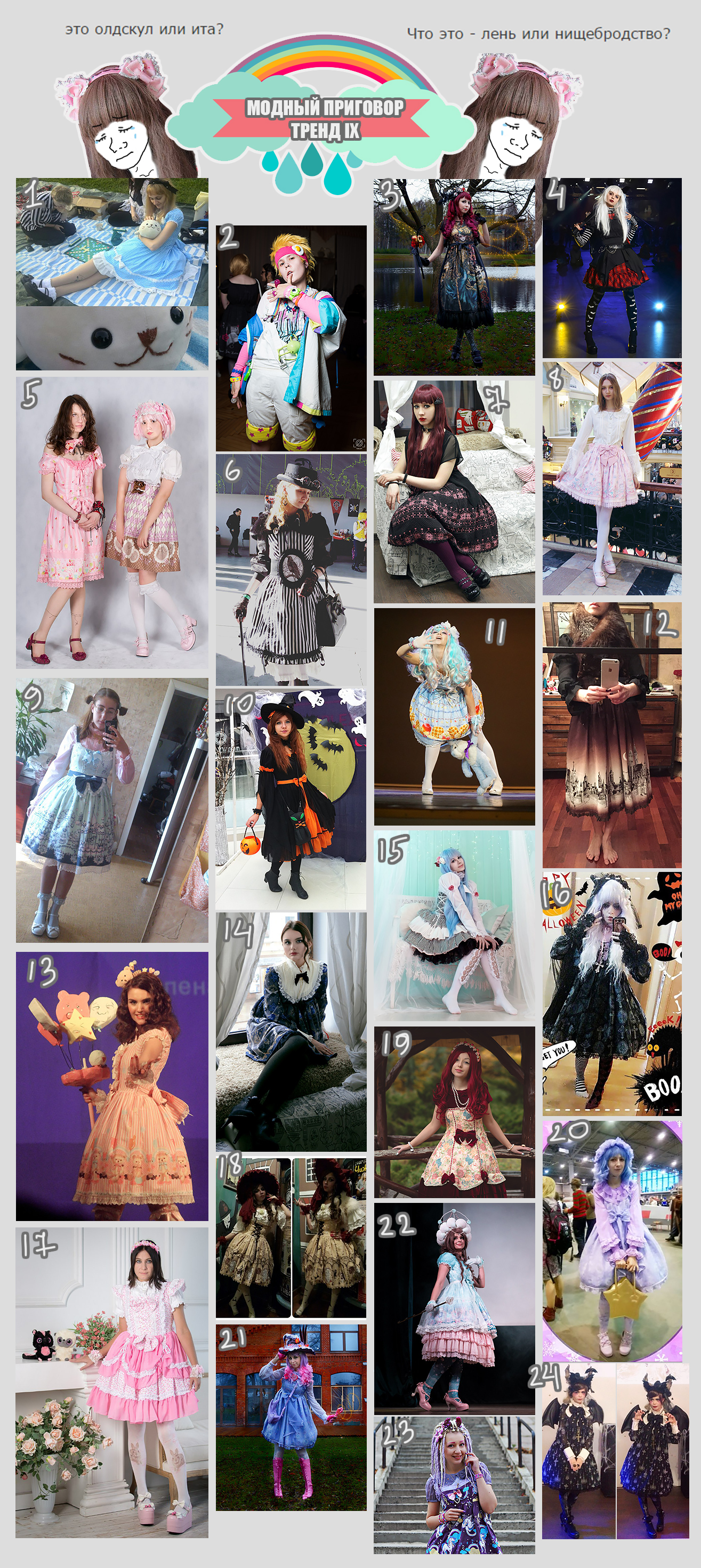 За прошедший тред скопилось множество волнующих вопросов: Олдскул или ита? Пухлые или худые ноги? Удлиняющие юбки или мини? Удачное решение или самозашквар? Крутим сладкие какашки на голове, собираем коорд Марии Нищеанетты, заворачиваемся в гобелены и ковры, и многое другое.