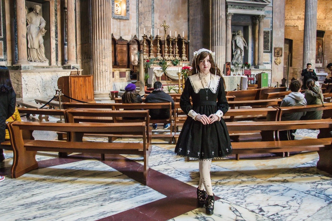 Пожалуй, встану на сторону тех, кто еще помнит, что лолита - это какбэ одежда. В случае с обсуждаемой леди, она поступила правильно, подобрав наиболее подходящий наряд из имеющихся, как и сделал бы любой нормальный человек в случае с обычной одеждой. Просто у кого-то только штаны, а у кого-то платья с рюшами. Особенно, если в поездку собираешься и хочешь сделать ее важной и запоминающейся. Не вижу никакой драмы. У самой был случай, когда ездила в поездку в одной лолите, и тоже посещала старинные церкви, в итоге удовольствия никакого, так как в бело-розовом платье чувствовала себя неуютно. Тогда и задумалась о том, что гардероб подобрала неправильно. Хотя Как по мне, то главное, чтобы все прикрыто было... Народ в церкви заваливается вообще в шлепках и шортах летом, едва ли не без футболок мужики, ну и поведение соответствующее. Это куда худшее зло, чем готическая лолита в естественной среде)